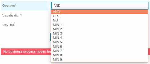 A Business Process Node consists of a name, title, an operator and one or more child nodes. It can be a Root Node, child node of other Business Process Nodes - or both.